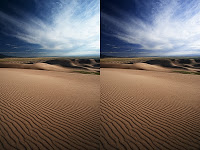 Similarly this can be done when you have large bodies of clouds. In these cases I find simply de-saturating the cyan out of the clouds gives a better cloud color. Keep in mind when you are removing this cyan, what you are doing is creating an image that is closer to what we on some level believe it ought to look like. Clouds are black and white with shades of gray. Skies are a Parrish or cobalt blue. Similar things can be done with yellows to greens, though the adjustments are often more slight.